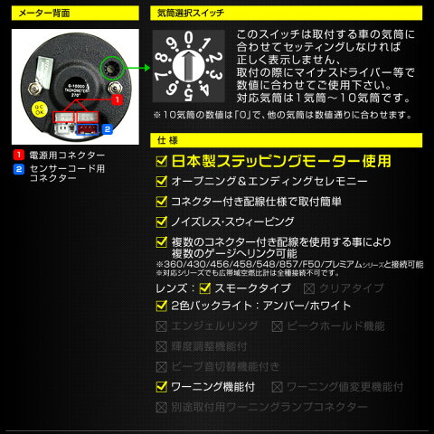 日本製ステッピングモーター搭載! LEDバックライト切替可能!(ホワイト/アンバー) ワーニング機能付! 日本製モーターだから品質の絶対的な安心感! そして驚くべきは【静音】 よりスマートに貴方の走りを演出します。